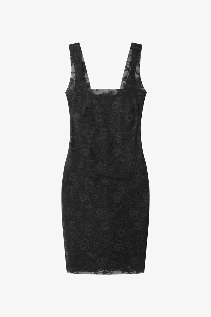 Vestido moldeador de encaje floral y sin costuras que define la silueta con suavidad creando un acabado invisible bajo la ropa. Gracias a su alto porcentaje de elastómero la prenda es muy adaptable y se ajusta al cuerpo con total naturalidad. Los acabados free cut (corte láser) garantizan un ajuste perfecto sin marcas. Diseñado como una prenda In & Out, puede llevarse tanto como prenda interior como exterior combinando sensualidad y tendencia.